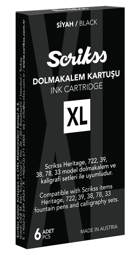 * Scrikss"in kullanıcılarına özel geliştirdiği Dolma Kalemlerde, yazmadaki etkiyi üst seviyeye taşımak için Scrikss kartuşlarının kullanılması öneriliyor. Scrikss Heritage , 722 , 39 , 38 , 78 , 33 model dolmakalem ve kaligrafi setleri ile uyumludur.