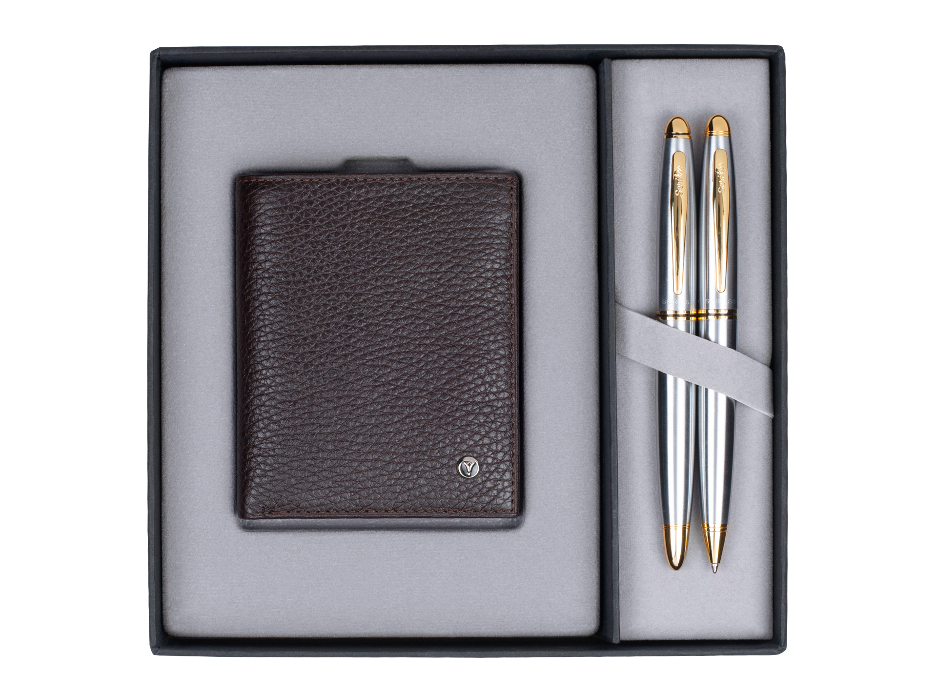 DR222 Hediyelik Set Tükenmez Kalem - Mekanik Kurşun Kalem 35 Noble Gold Krom & Deri Comfort Cüzdan Kahverengi Ürün görseli