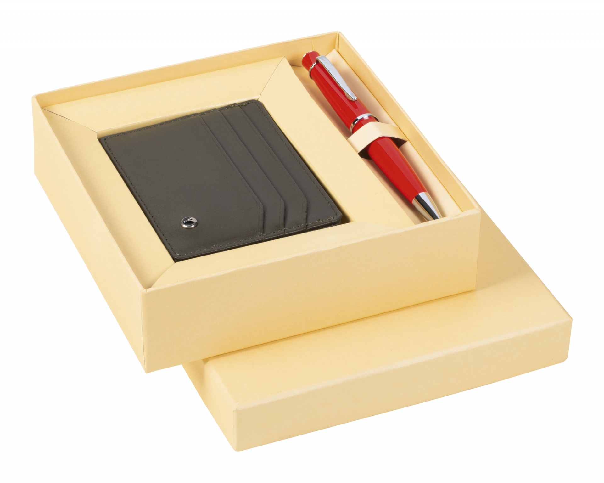 DR3104-C1/2 Hediyelik Set Tükenmez Kalem 62 Kırmızı & Deri Kredi Kartlık Haki