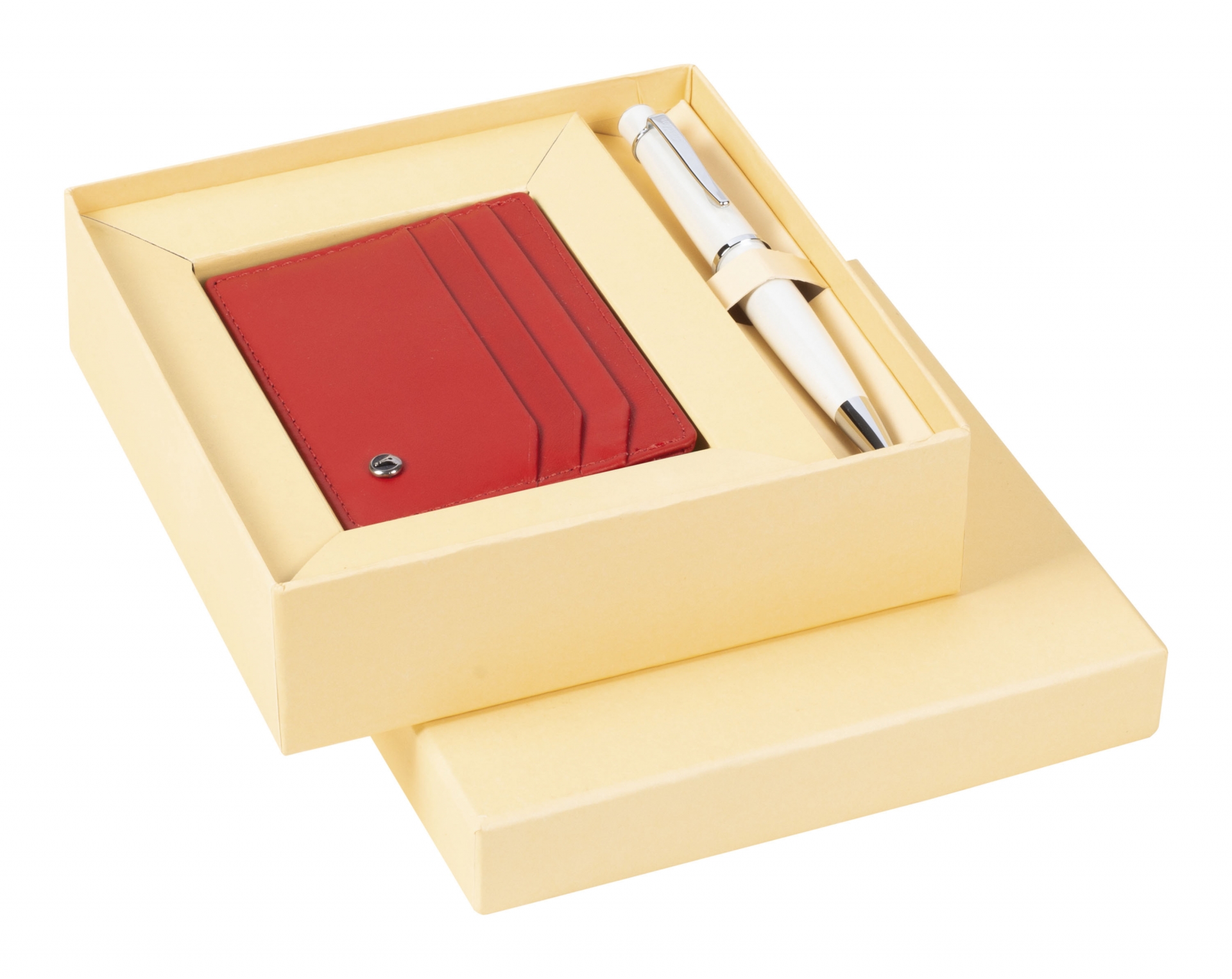 DR3104-C2/2 Hediyelik Set Tükenmez Kalem 62 Chic Beyaz & Deri Kredi Kartlık Kırmızı