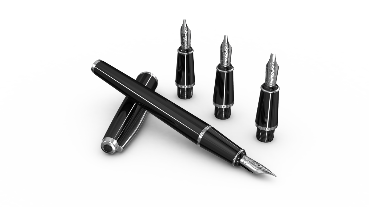 • Krom kaplama iridyum noktalı çelik uç (1 adet medium uç, 1.1 mm - 1.5 mm ve 2.3 mm olmak üzere 3 adet kaligrafi uç)