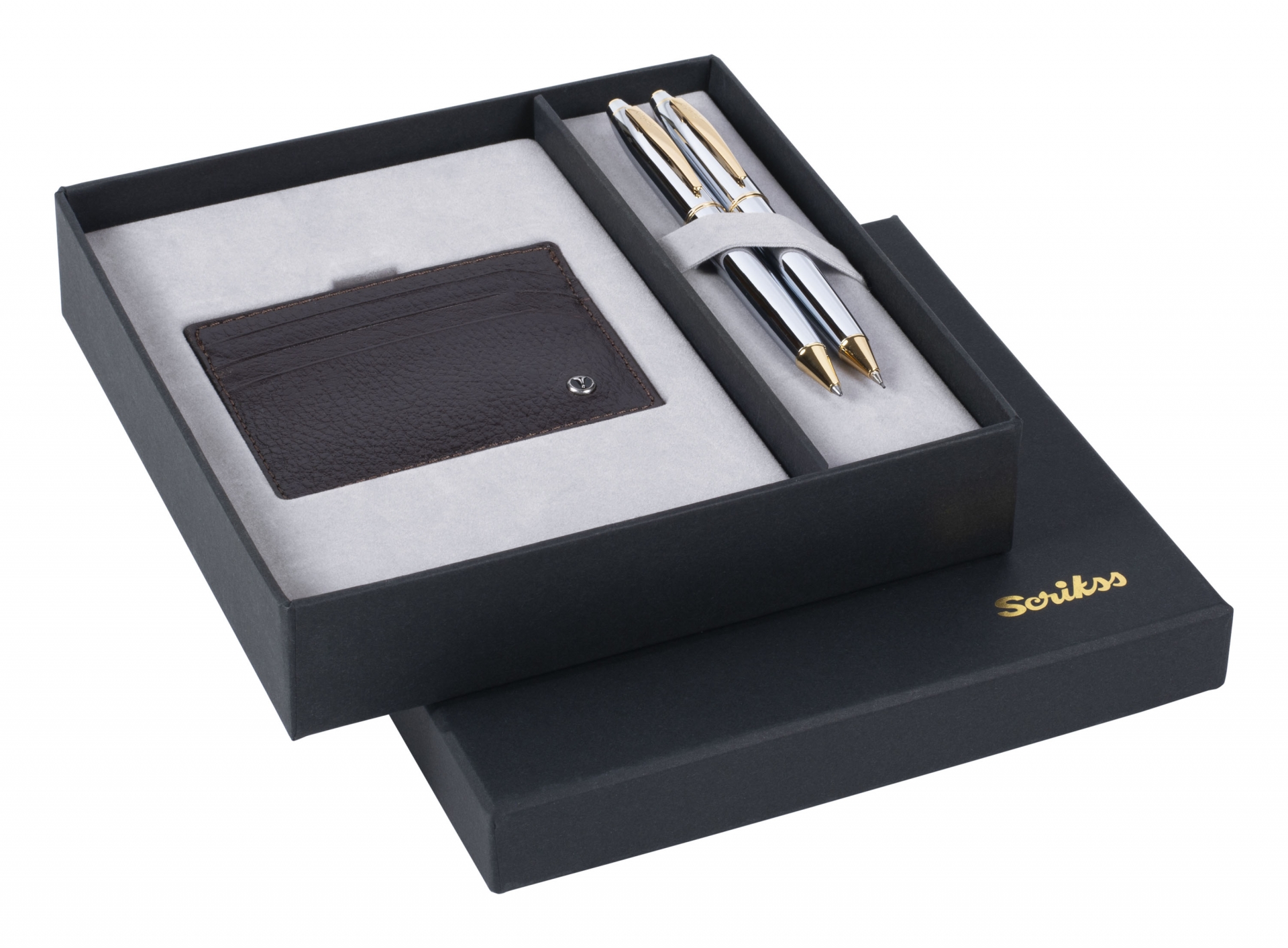* 35 Noble Tükenmezkalem - Versatil takım ve hakiki deri kredi kartlıktan oluşan şık hediyelik set.“Leather by Scrikss” tescilli markalı deri aksesuarları ve Scrikss kalemleri ile birlikte özel olarak hazırlanan hediyelik setler; promosyon çalışmalarını, özel ve önemli günlerde vermek istenen hediyeleri anlamlı kılıyor, değer katıyor.