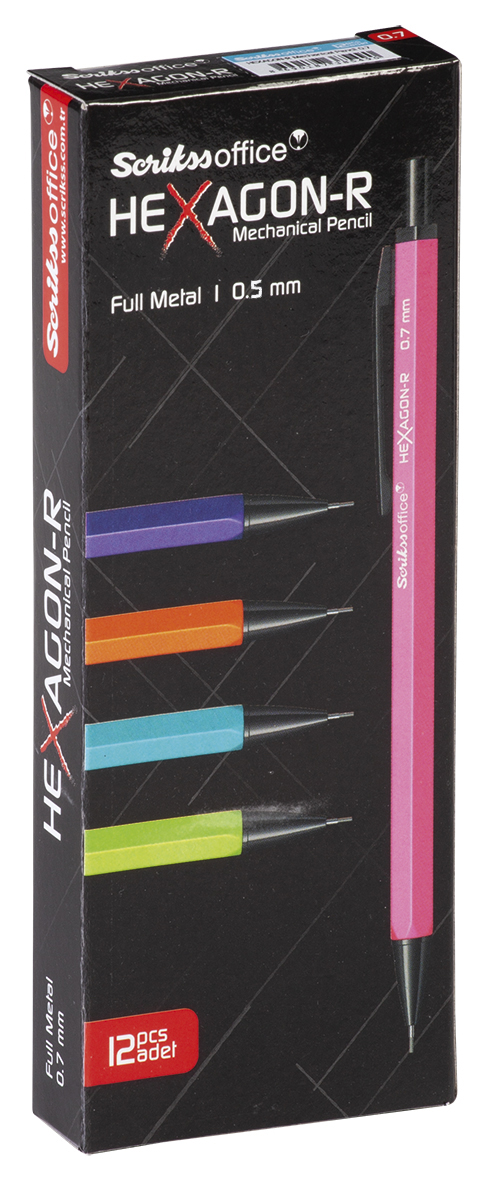 * Altıgen gövde tasarımlı ve tepede silgisi bulunan Scrikss Hexagon-R; 0.5 ve 0.7 mm olarak iki farklı uç kalınlığı alternatifi sunuyor.