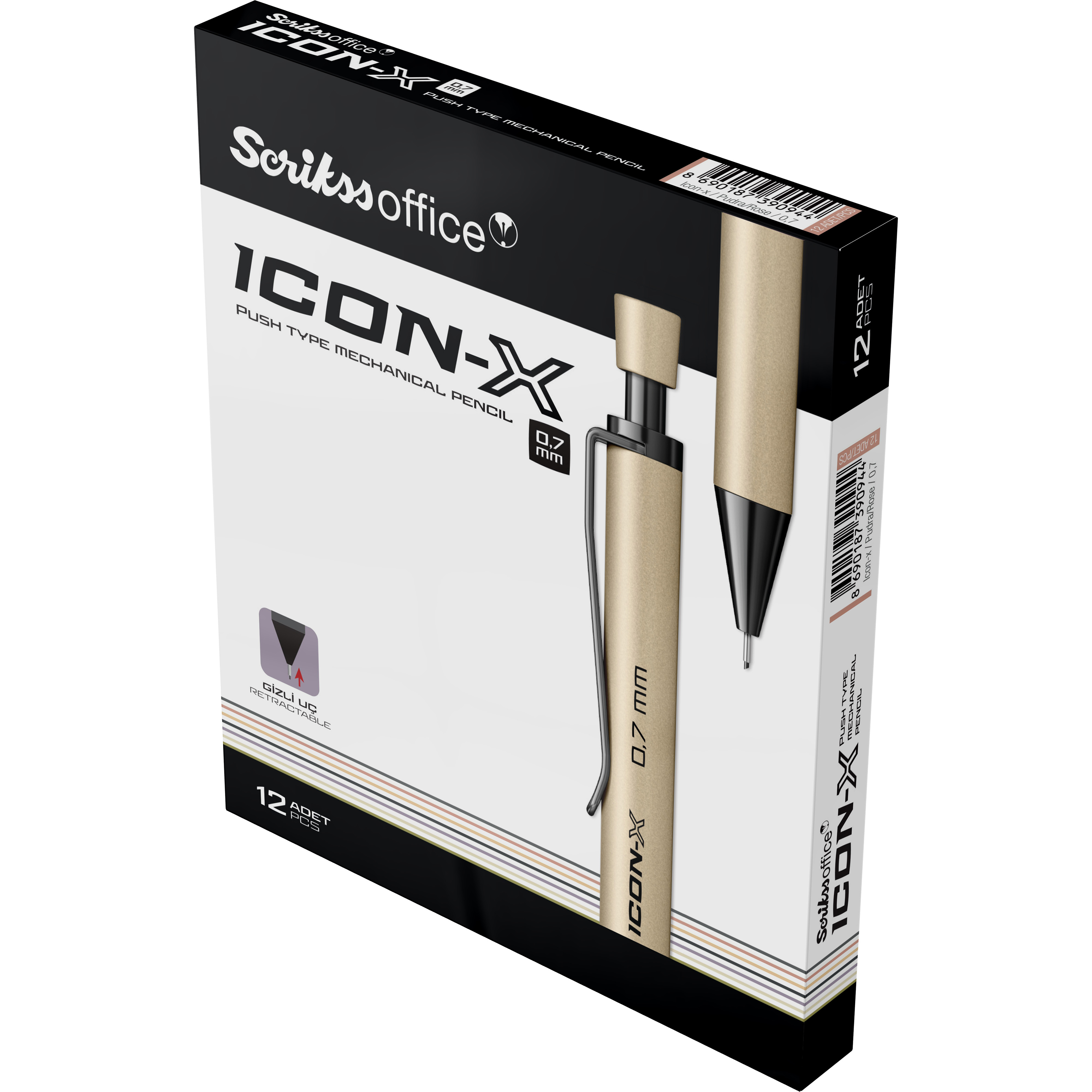 Icon-X Mekanik Kurşun Kalem Metal 0.7 mm Pudra 12'li Kutu