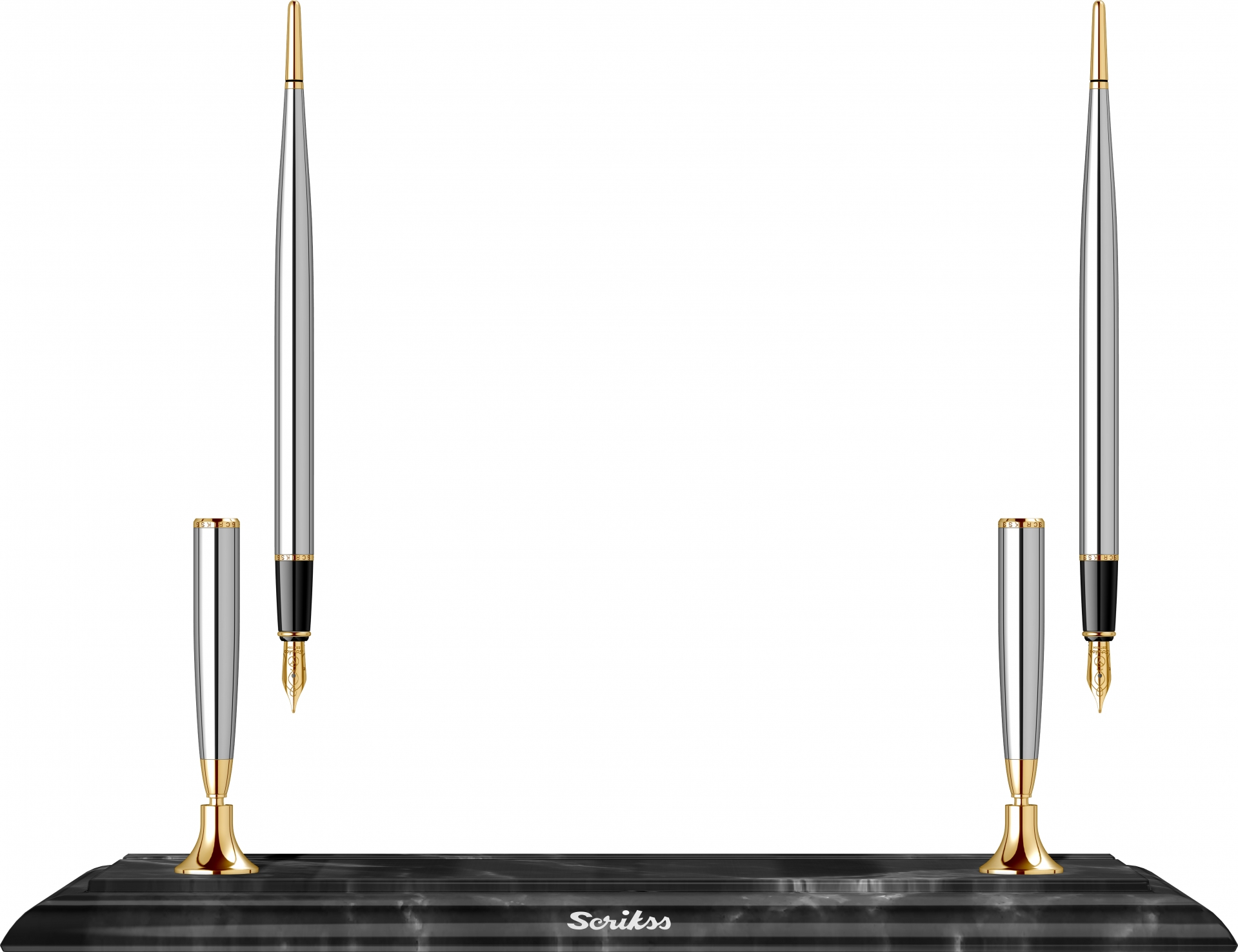 İkili Masa Takımı Siyah Mermerli 17W Dolma Kalem & Tükenmez Kalem Krom Ürün görseli