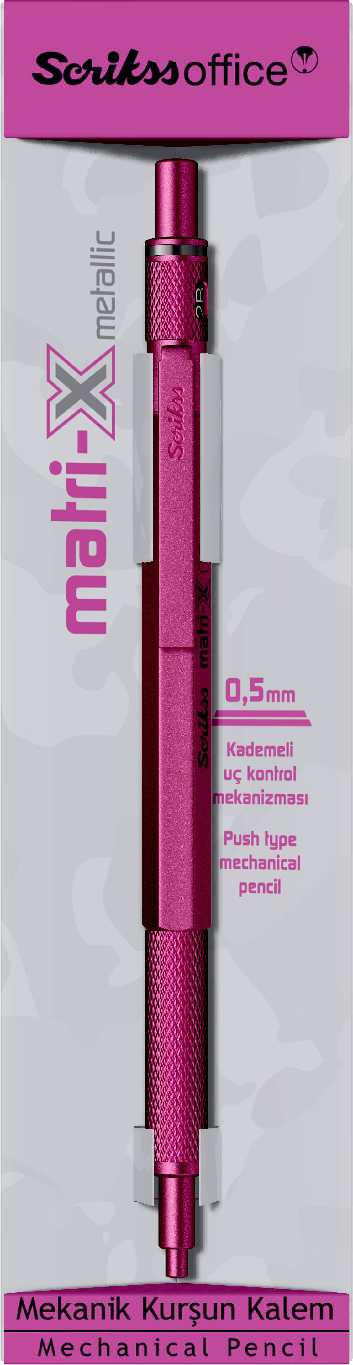 * 0.5 mm veya 0.7 mm uç alternatifleri bulunan Scrikss Matri-X, kademeli özel mekanizması sayesinde tepesine basıldığında ucun yere düşmesini önlüyor, kırılmadan uzun süre kullanılmasını sağlıyor.