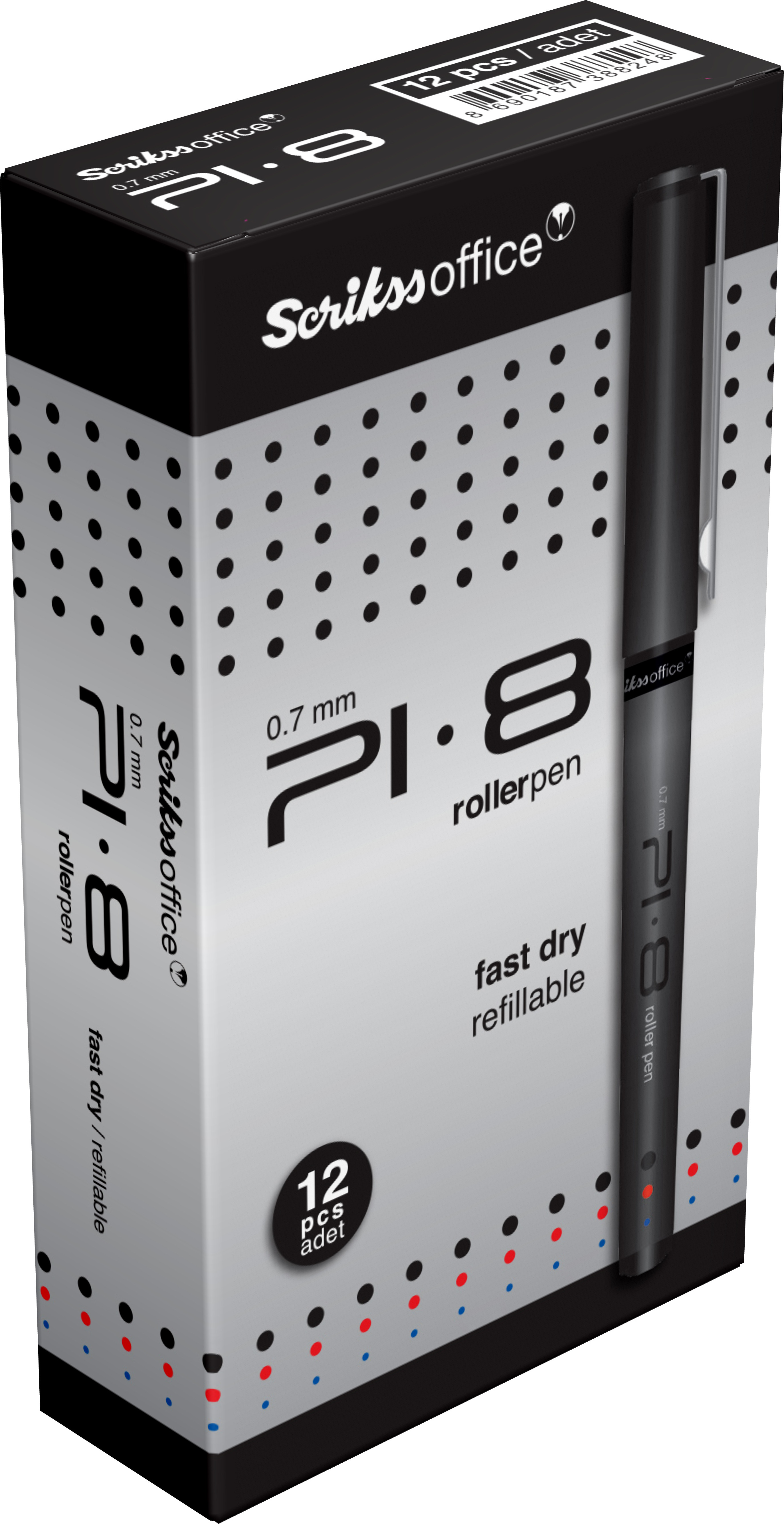 PI8 Roller Kalem 0.7 mm Siyah 12'li Kutu Ürün görseli